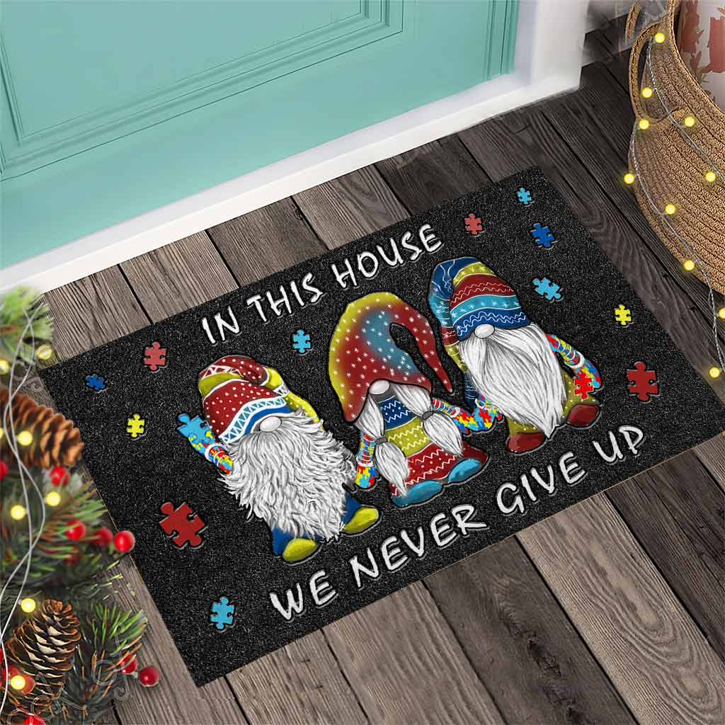 In diesem Haus geben wir niemals auf – Fußmatte zur Sensibilisierung für Autismus