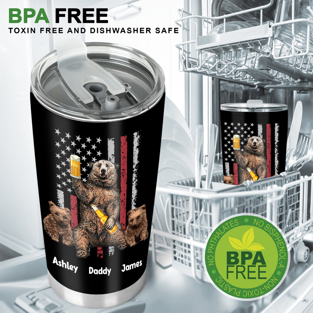 - Dank der BPA-freien Materialien ist dieser Becher spülmaschinenfest und lässt sich daher leicht zu Hause reinigen.