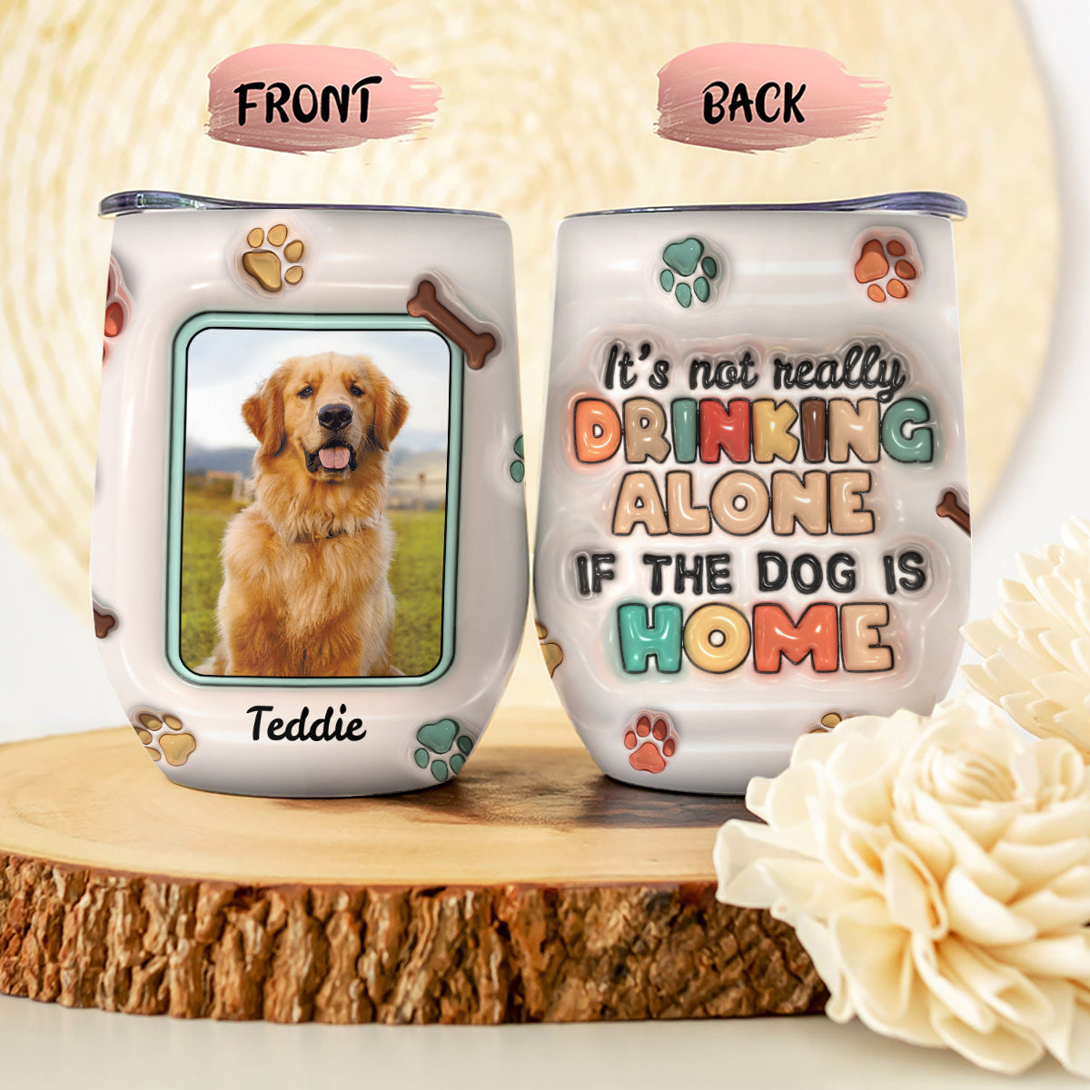 Allein trinken ist kein Vergnügen, wenn der Hund zu Hause ist – personalisierter Weinbecher für Hunde