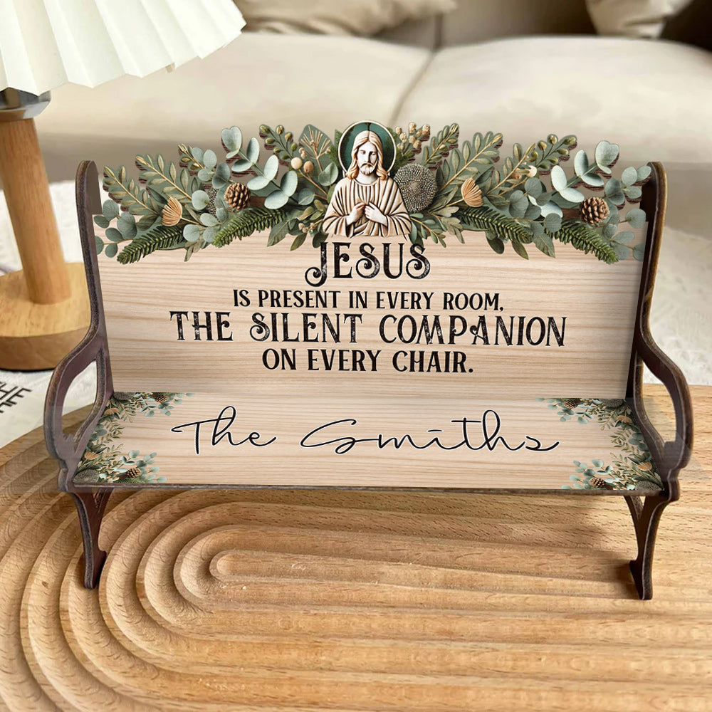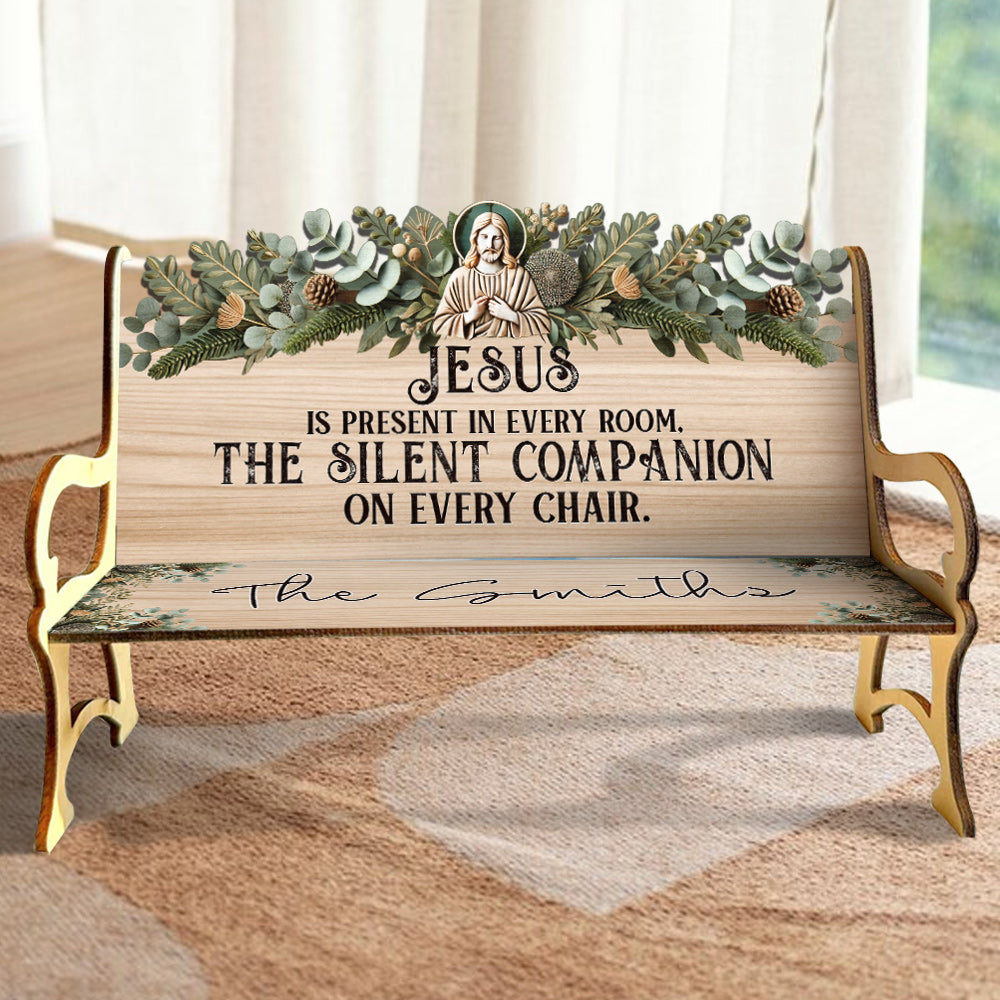 Jesus ist in jedem Raum gegenwärtig – Personalisierte christliche Holzbank