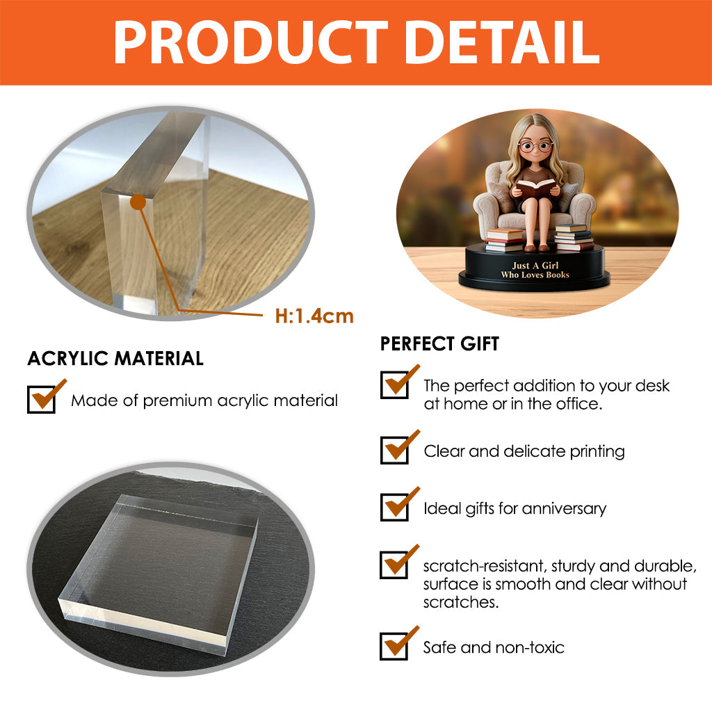 Einfach ein Mädchen, das Bücher liebt – personalisierte Acrylplakette in Buchform