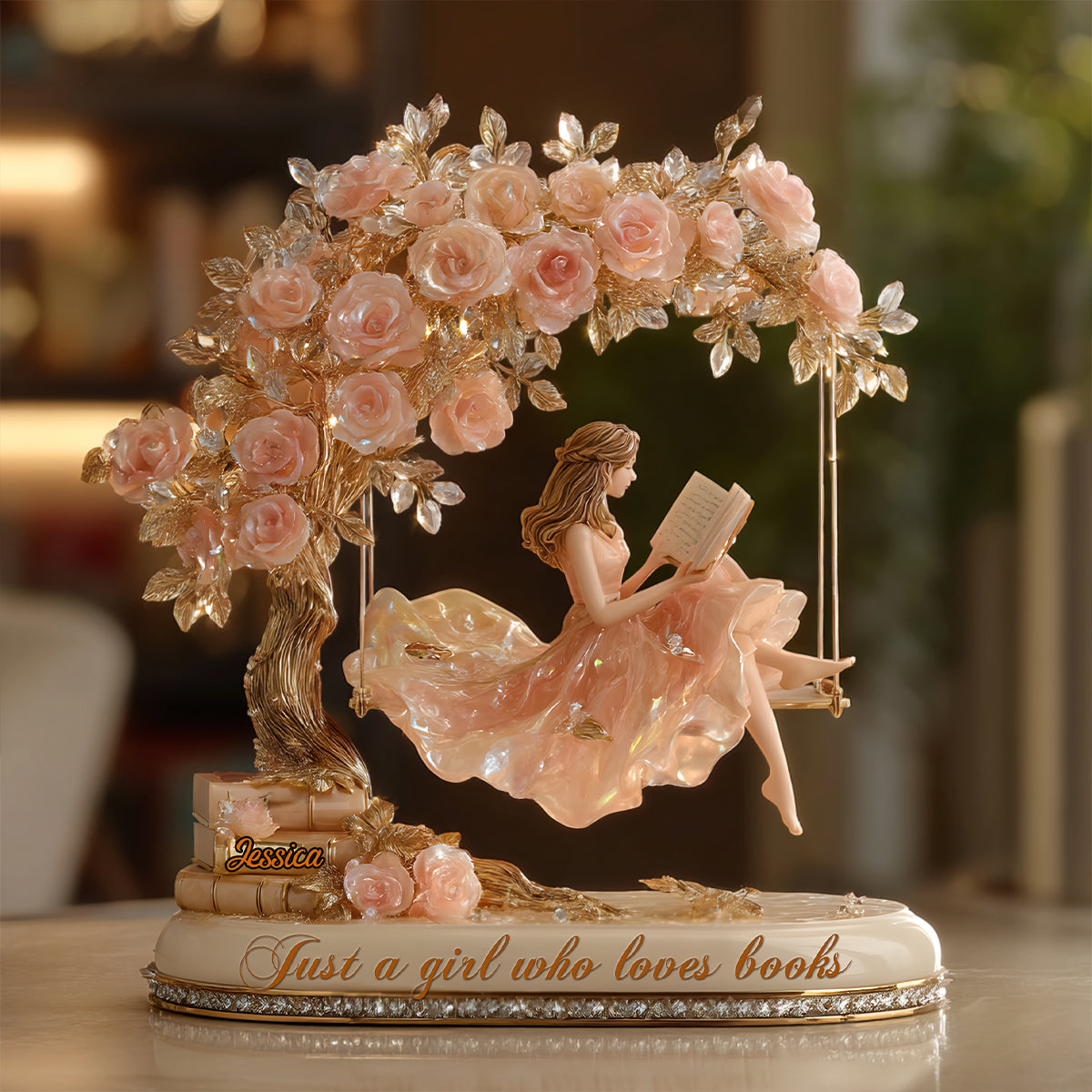 Einfach ein Mädchen, das Bücher liebt – personalisierte Acrylplakette in Buchform