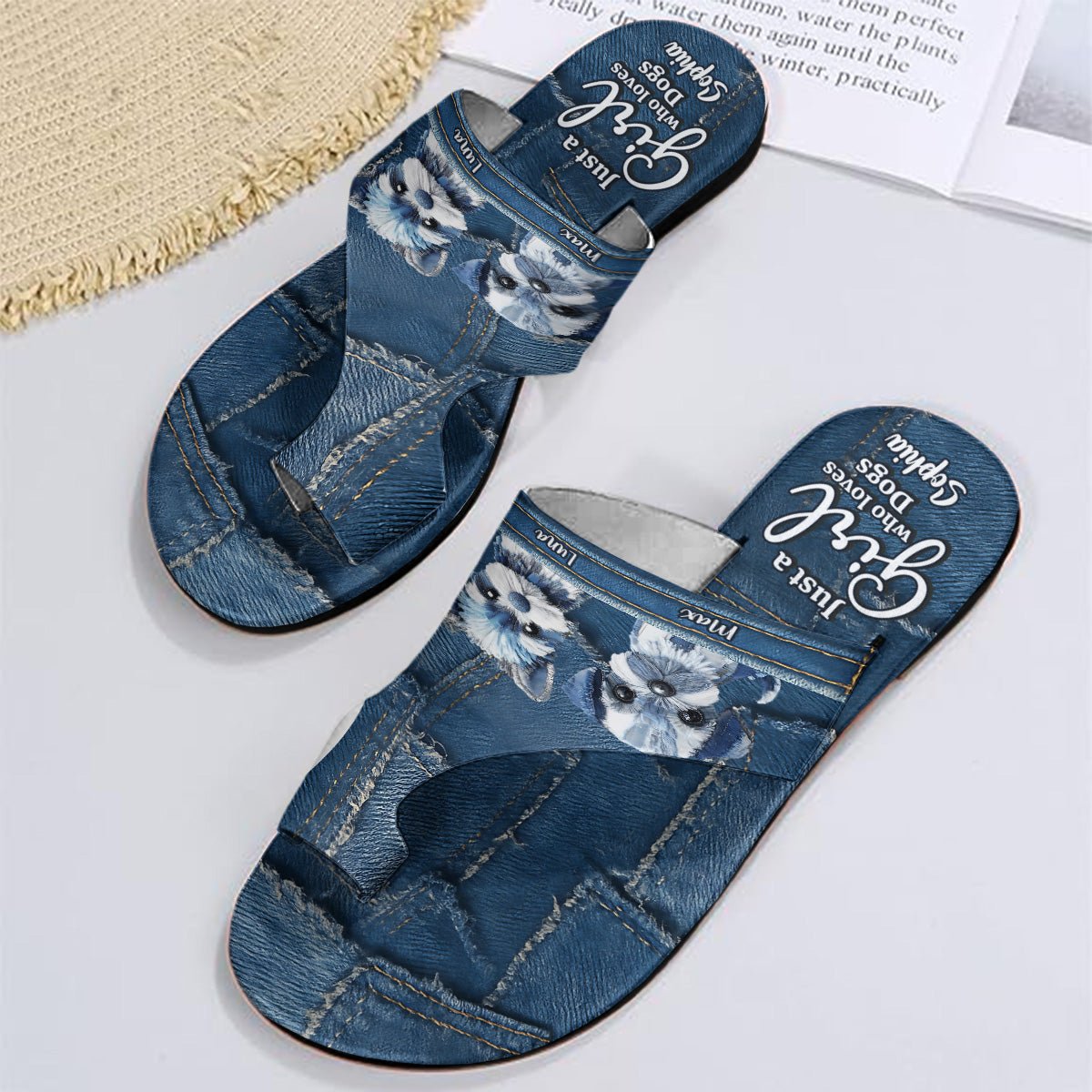 Einfach ein Mädchen, das Hunde liebt – Personalisierte Hunde-Sandalen mit offener Zehenpartie und Fußgewölbeunterstützung
