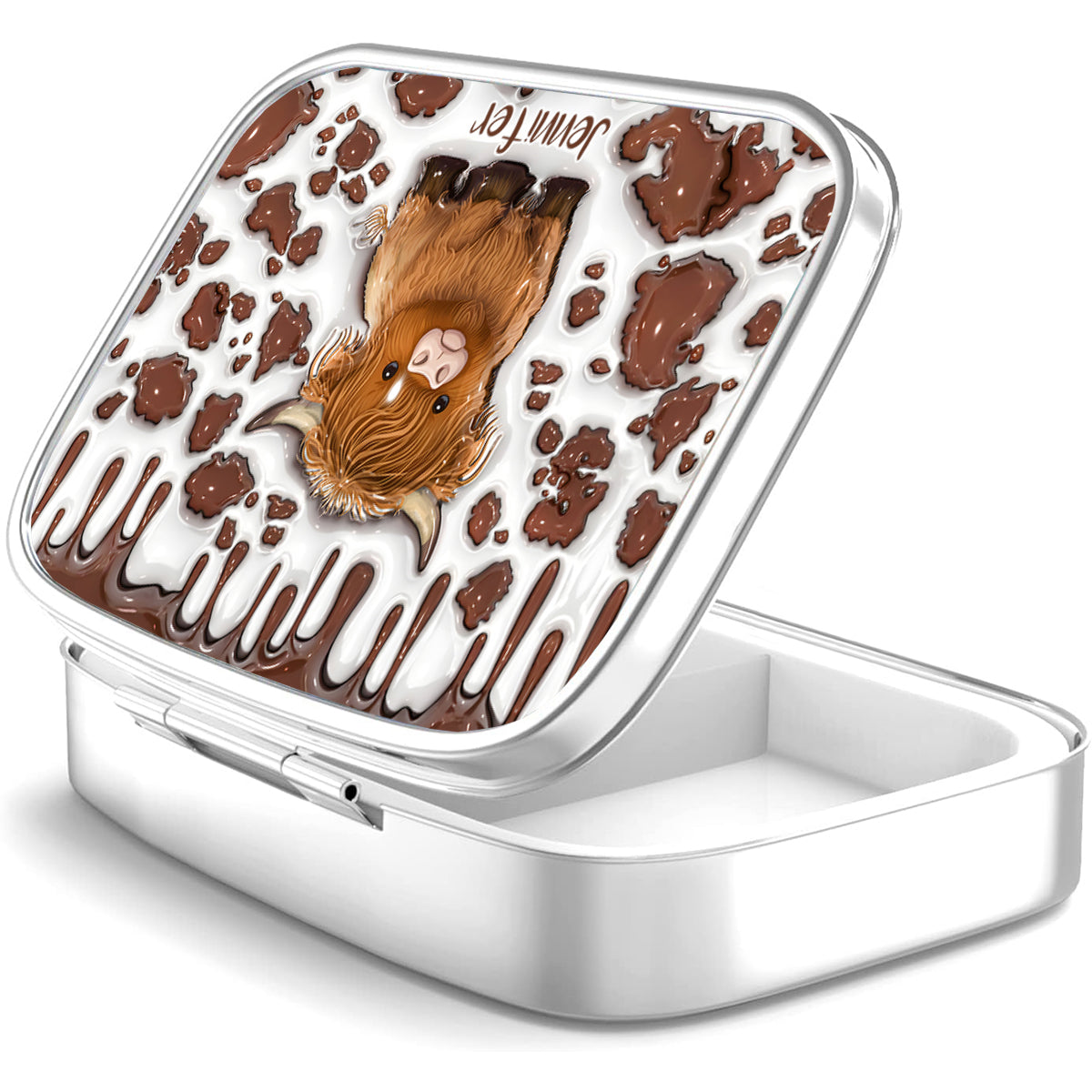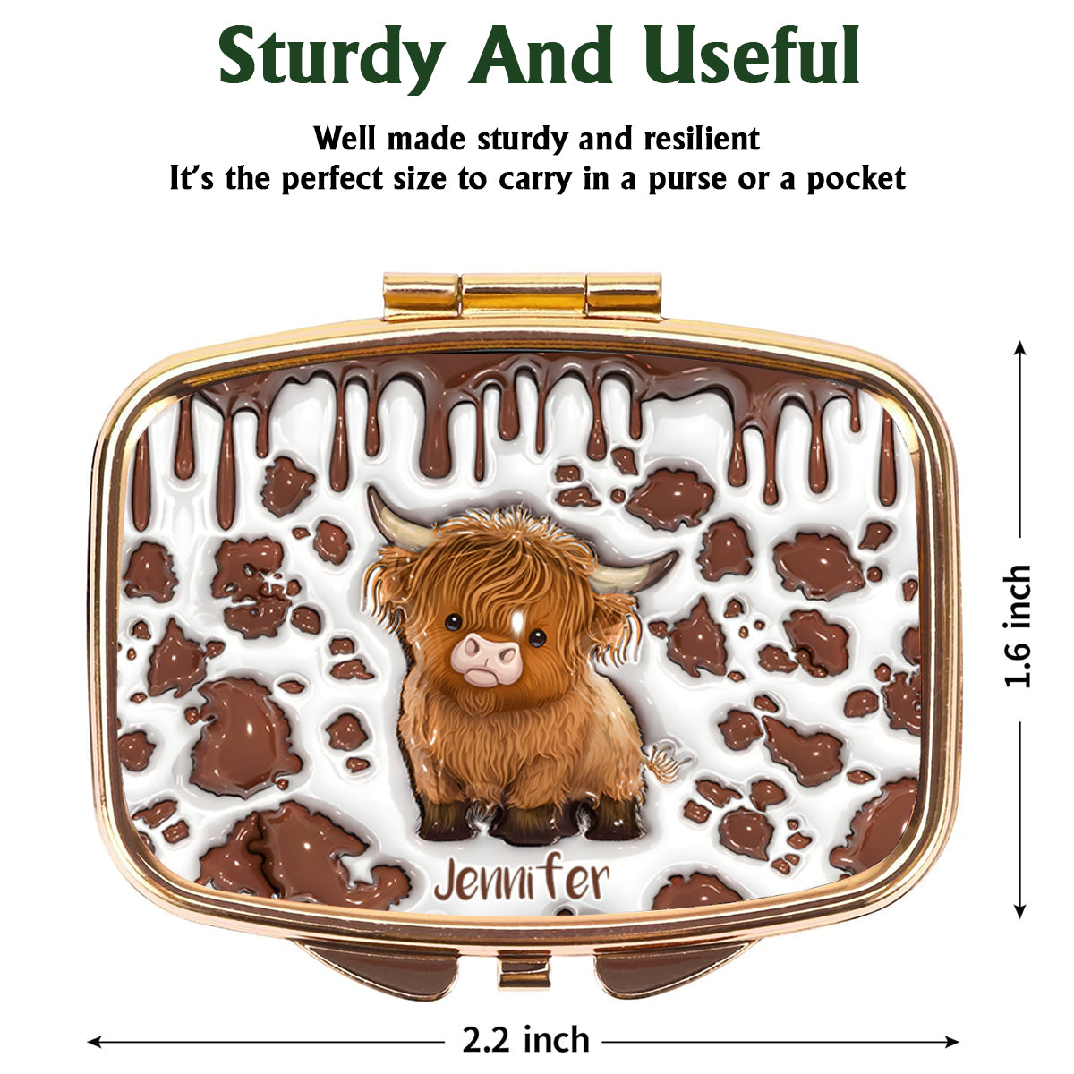 Einfach ein Mädchen, das Hochlandrinder liebt – Personalisierte Pillenbox mit Hochlandrind-Motiv