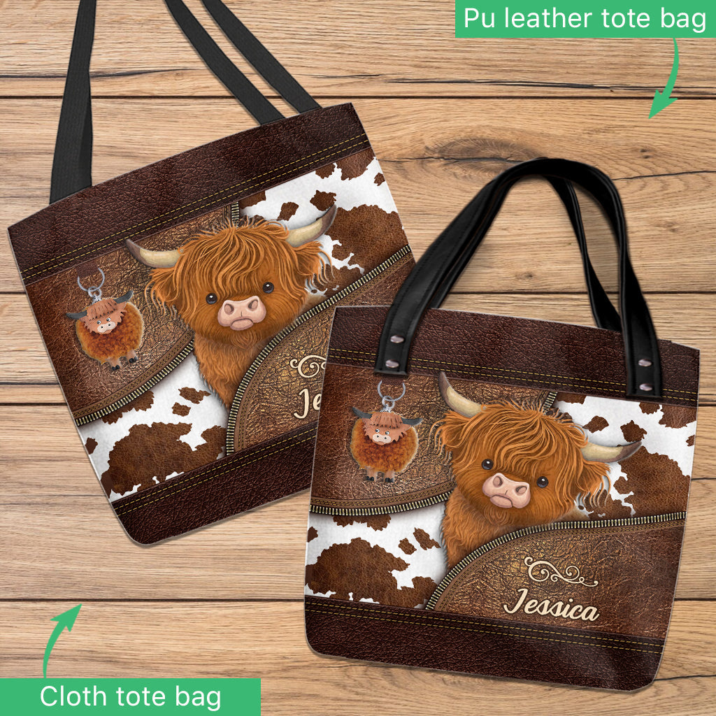 Personalisierte Tragetasche für ein Mädchen, das Hochlandrinder liebt