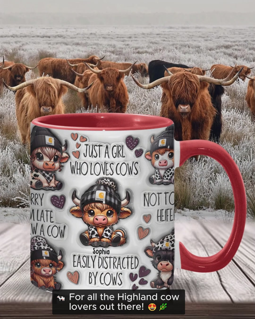 Personalisierte Tasse mit Akzent für ein Mädchen, das Hochlandrinder liebt