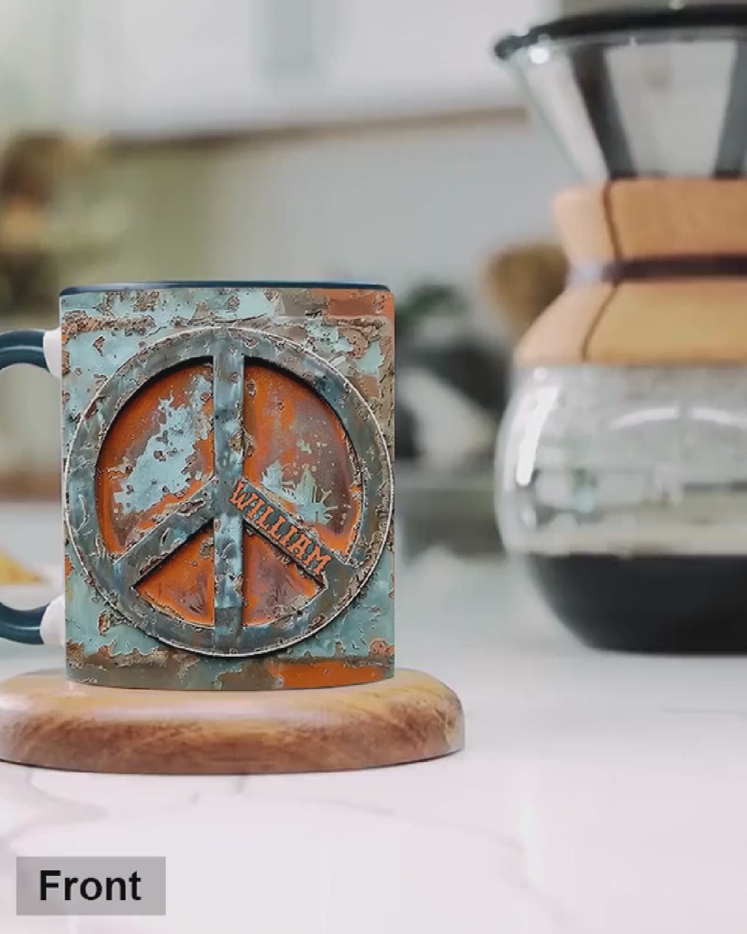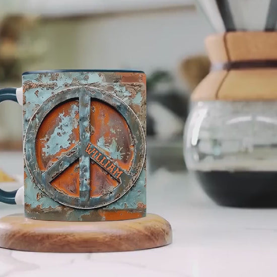 Liebe und Frieden – Personalisierte Tasse mit Hippie-Akzent