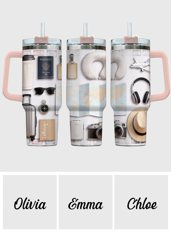 Reiselustig – Personalisierter Reisebecher mit Henkel