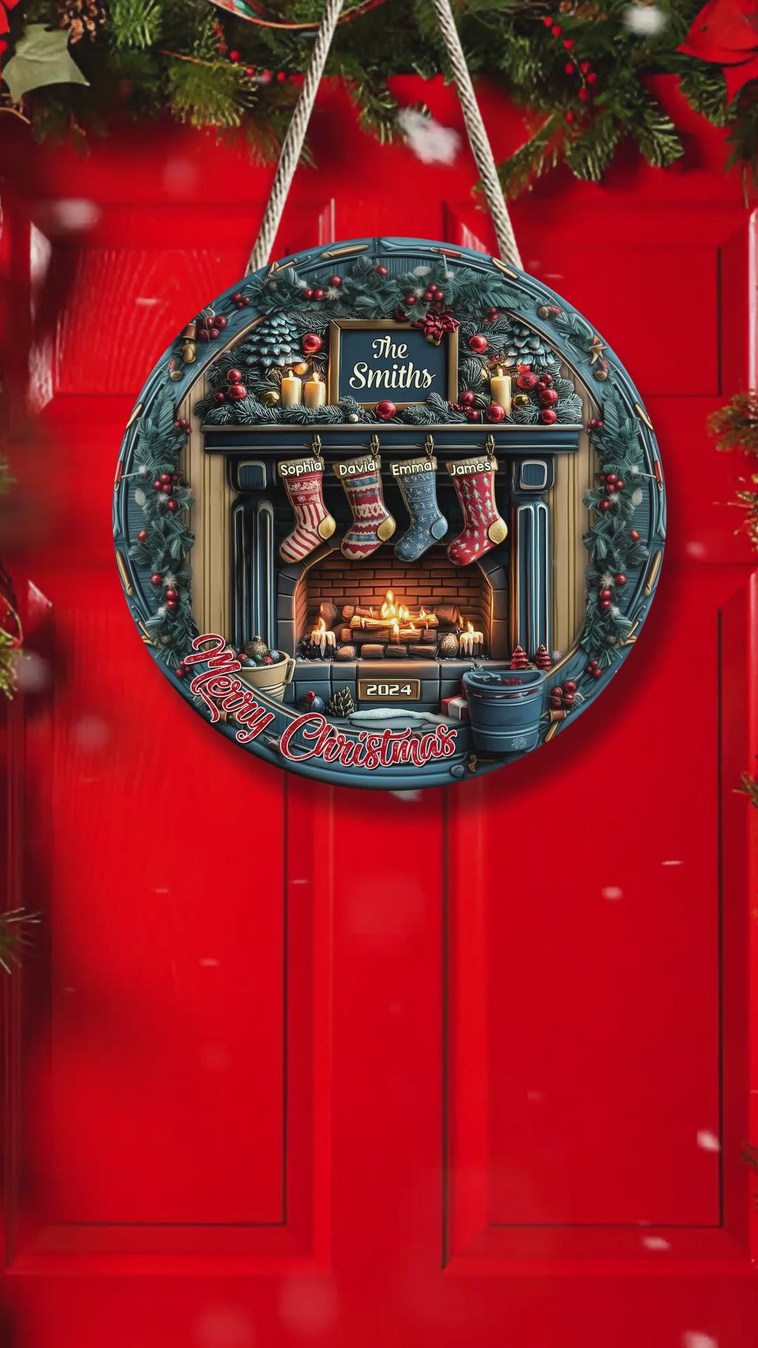 Frohe Weihnachten – Personalisiertes, individuell geformtes Holzschild für die Familie