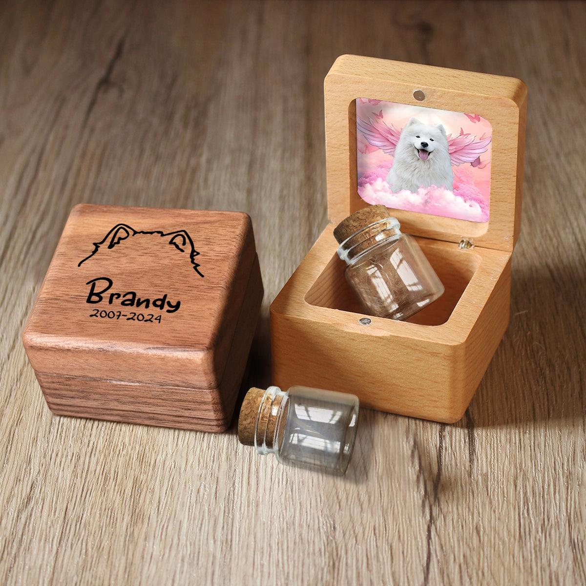- Dieses personalisierte Erinnerungsstück aus Holz bietet Platz für Haare, Zähne oder andere kleine Andenken eines geliebten Haustiers. Es ist auch ein wunderbares Geschenk für Familienmitglieder oder Freunde, die ein geliebtes Haustier verloren haben.