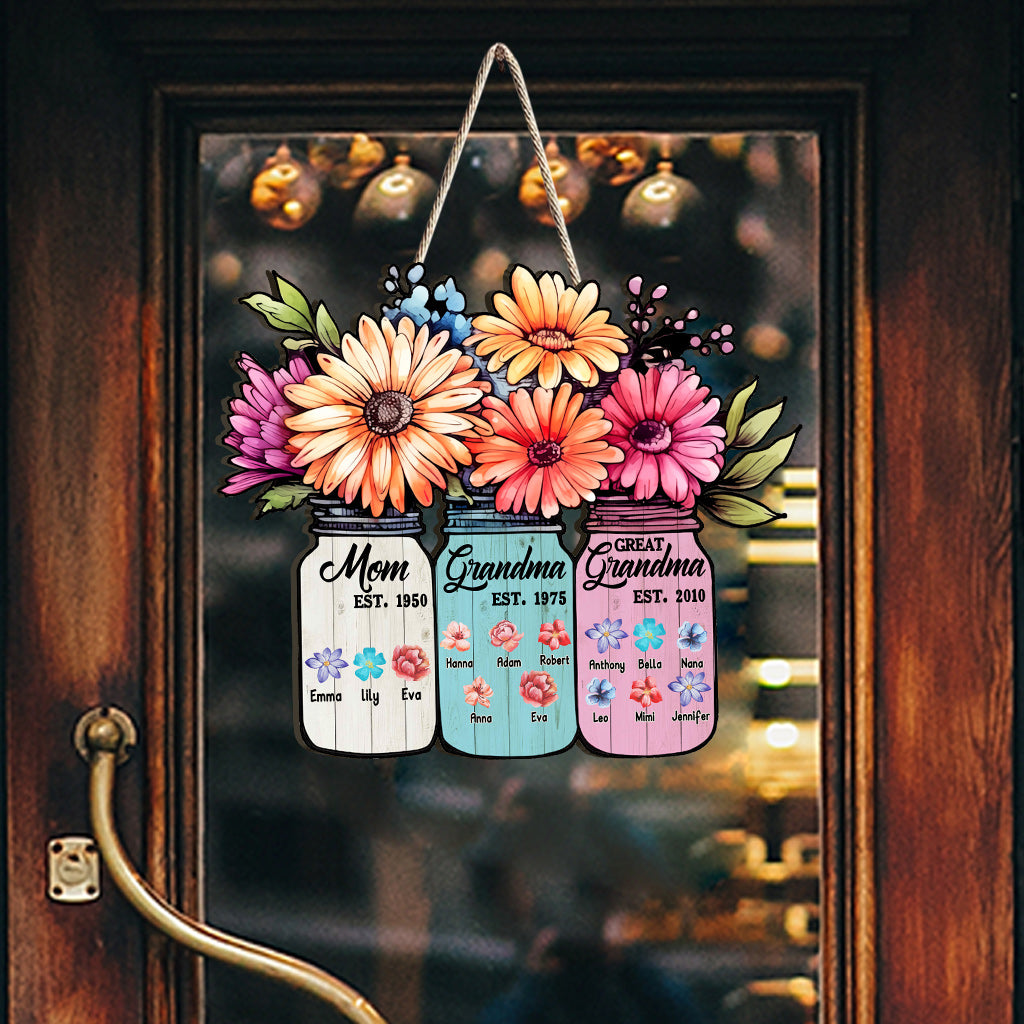 Mama, Oma, Uroma – personalisiertes, individuell geformtes Holzschild für Oma
