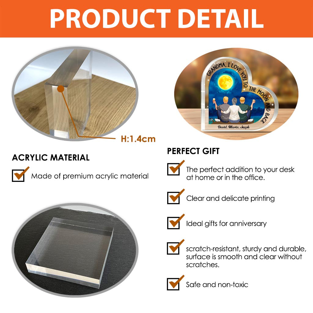 Mond und zurück – Geschenk für Mama, Oma – Personalisierte Acrylplakette in individueller Form