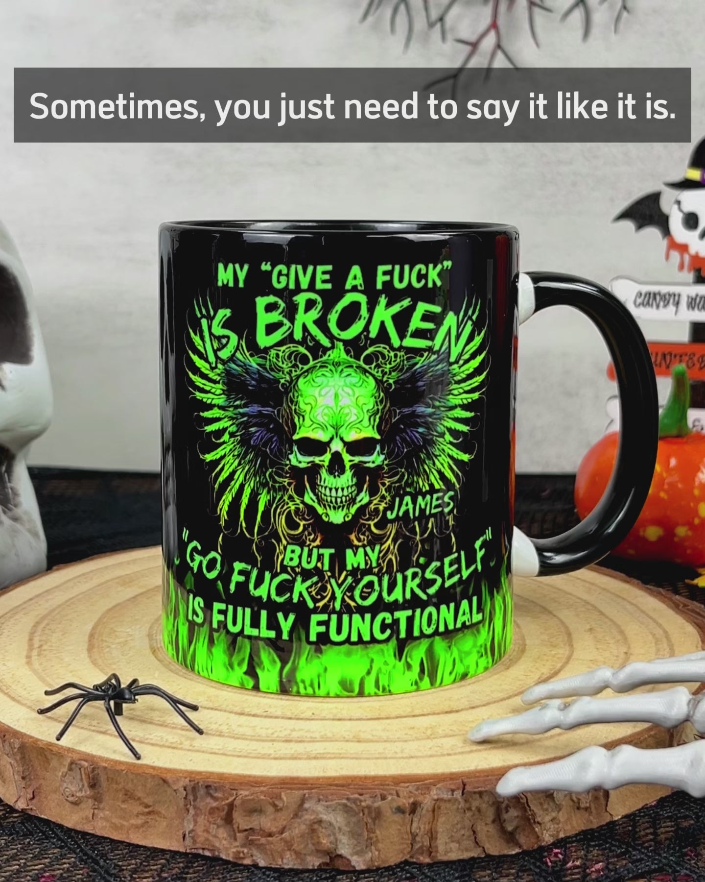 Meine "Scheiß drauf"-Tasse ist kaputt, aber meine "Leck mich am Arsch"-Tasse funktioniert einwandfrei – personalisierte Tasse mit Totenkopf-Akzent