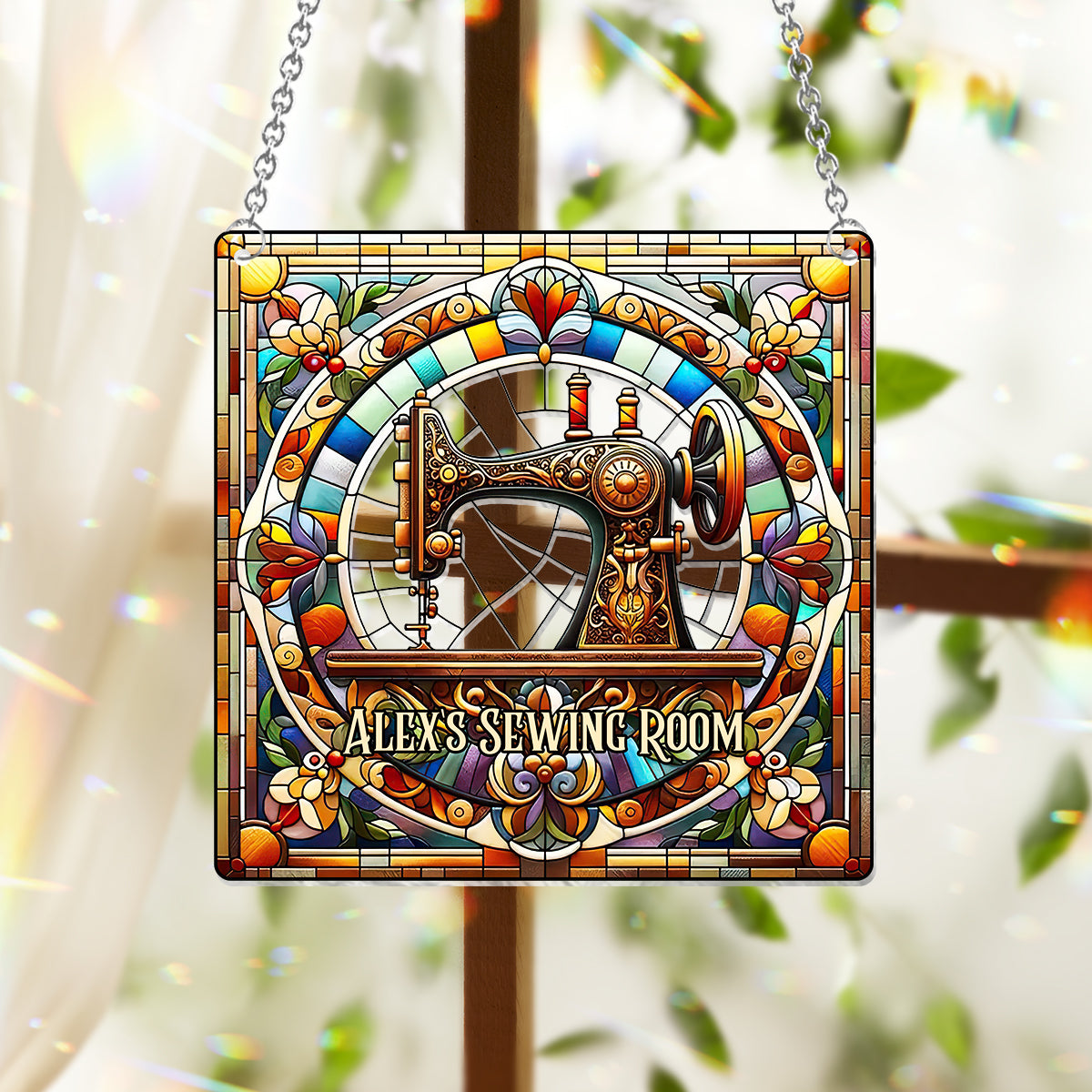 Mein Nähzimmer – Personalisierter Fensterhänger-Sonnenfänger als Schmuck