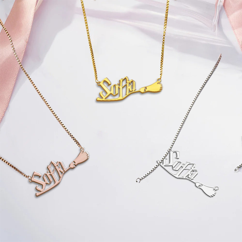 Mystischer Besen – Personalisierte Hexenkette mit Anhängern