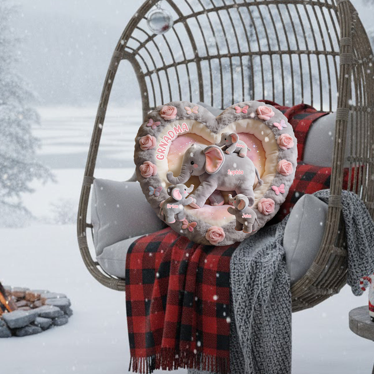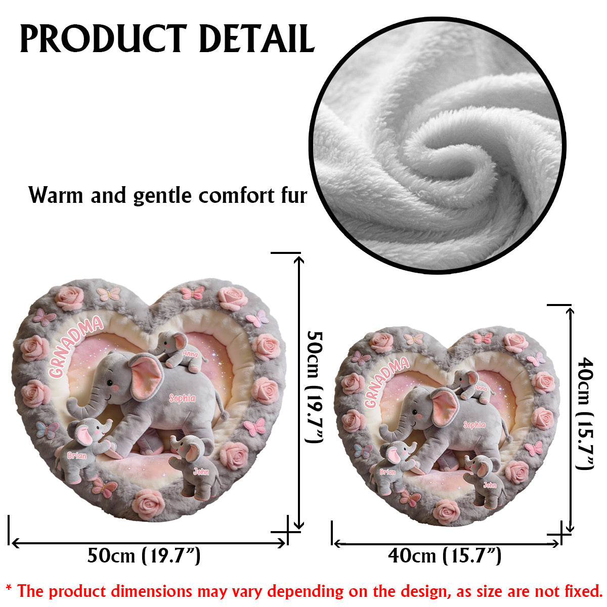 Elefanten-Geschenk für Mama und Oma – Personalisiertes Kissen in Form eines Oma-Kunstfells