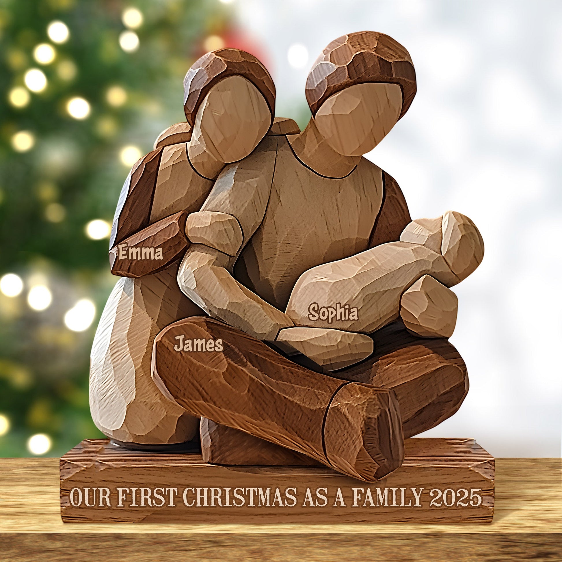 Unser erstes Weihnachtsfest als Familie – Personalisierte, individuell geformte Holzplakette für die Familie