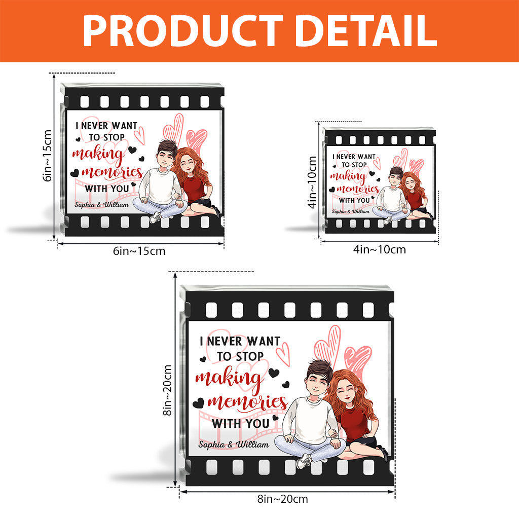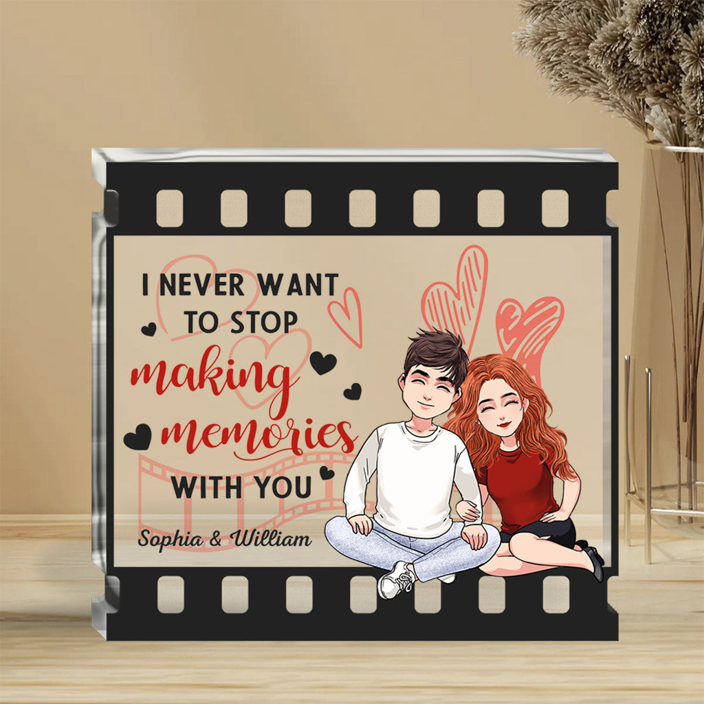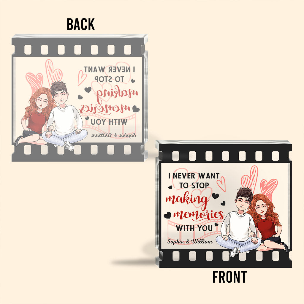 Ich möchte niemals aufhören, Erinnerungen mit dir zu sammeln – personalisierte Acrylplakette in individueller Form für Paare