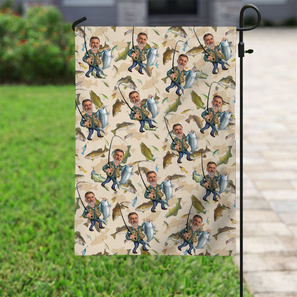 Lustiges Angelmotiv mit Foto - Personalisierte Angel-Gartenflagge