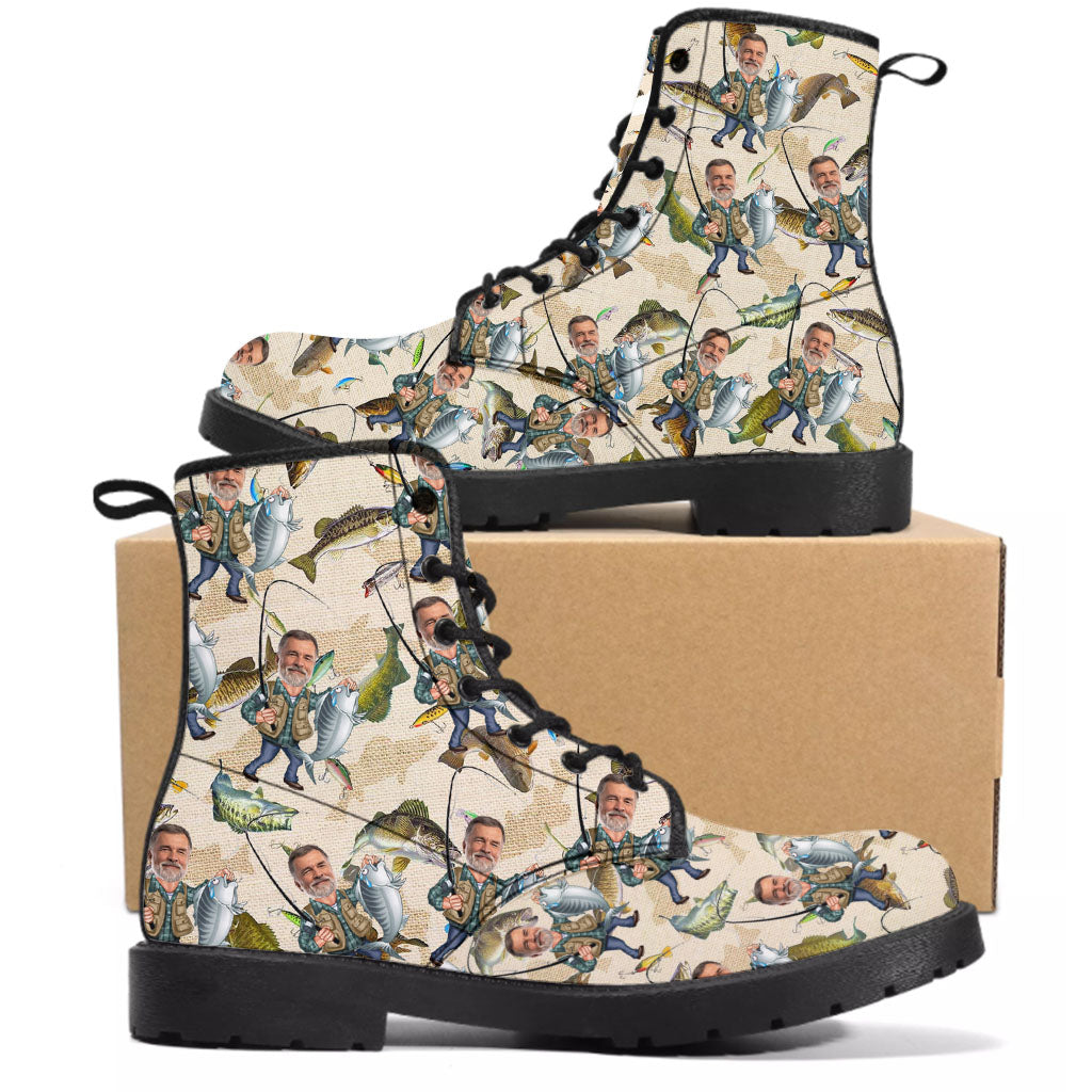 Foto eingefügt Lustiges Angeln - Personalisierte Angelstiefel aus Leder