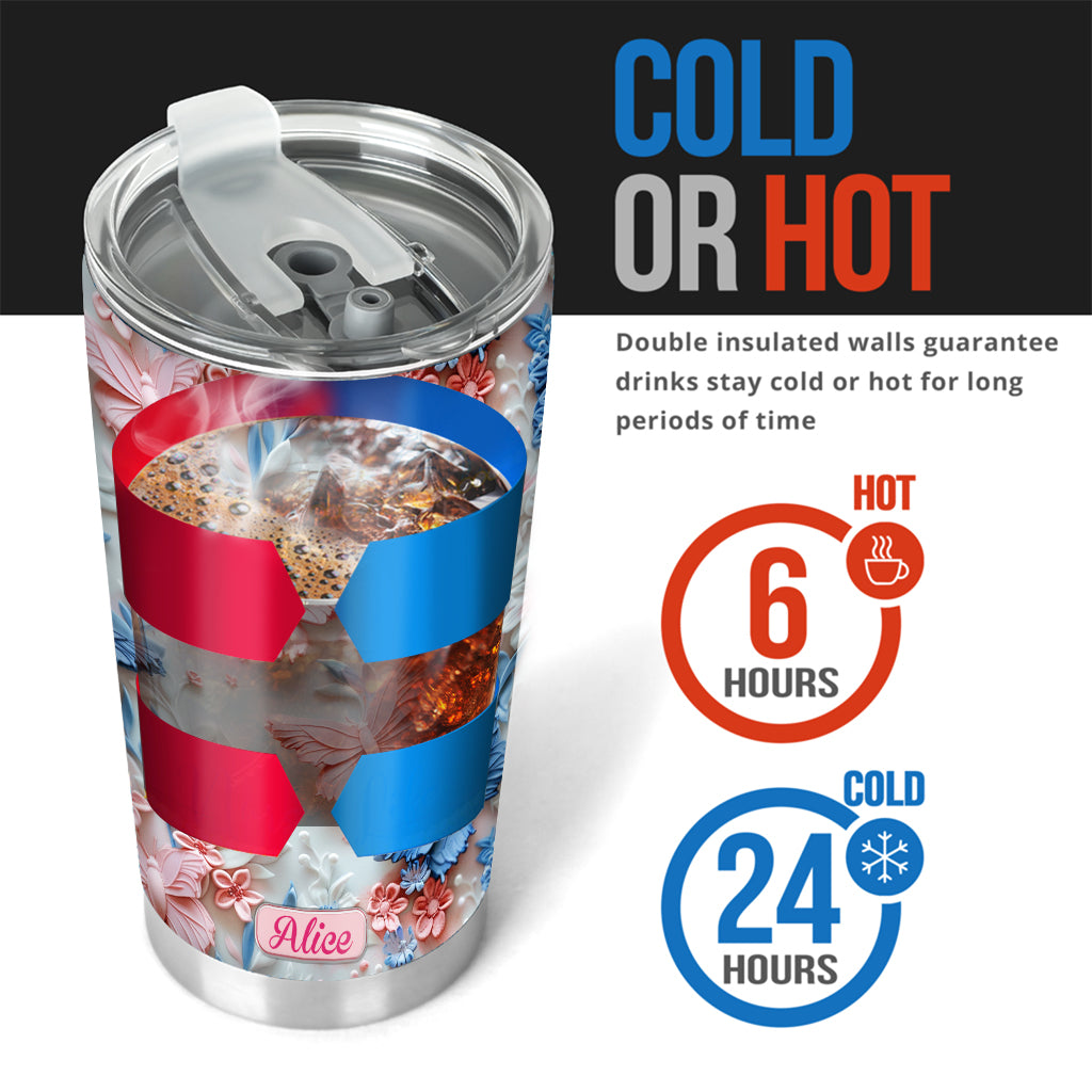 Personalisierter Schmetterlingsbecher mit rosa und blauen Schmetterlingen
