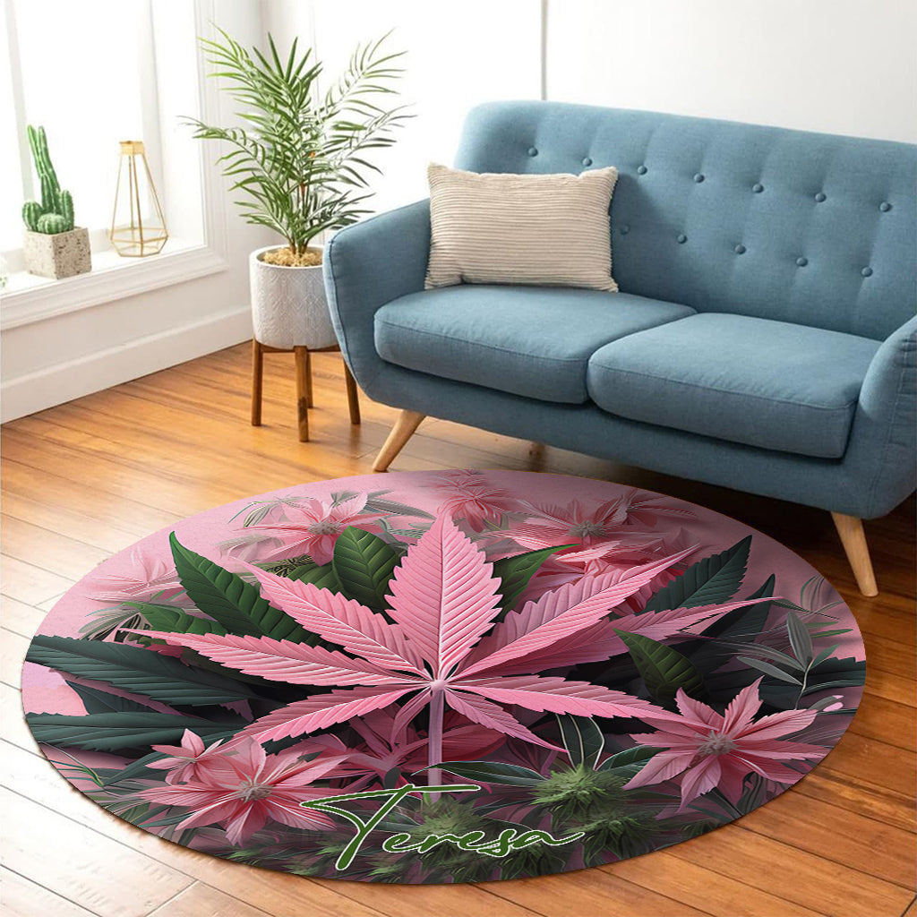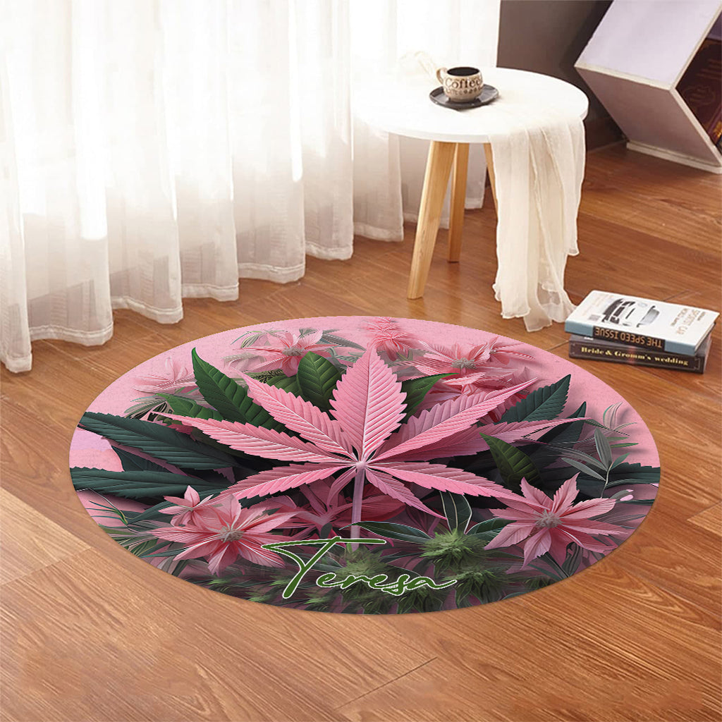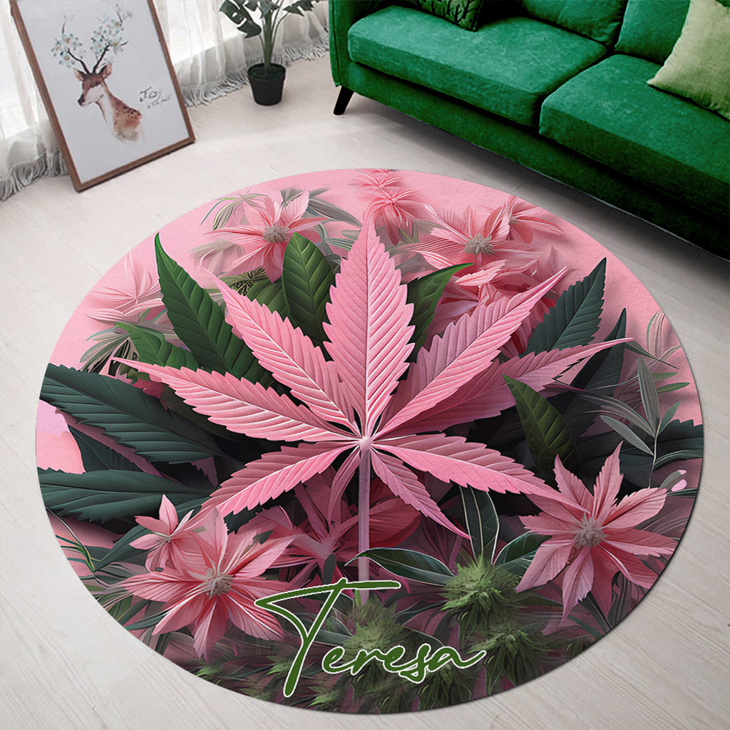 Pink In My Area - Personalisierter runder Teppich mit Unkrautmotiv