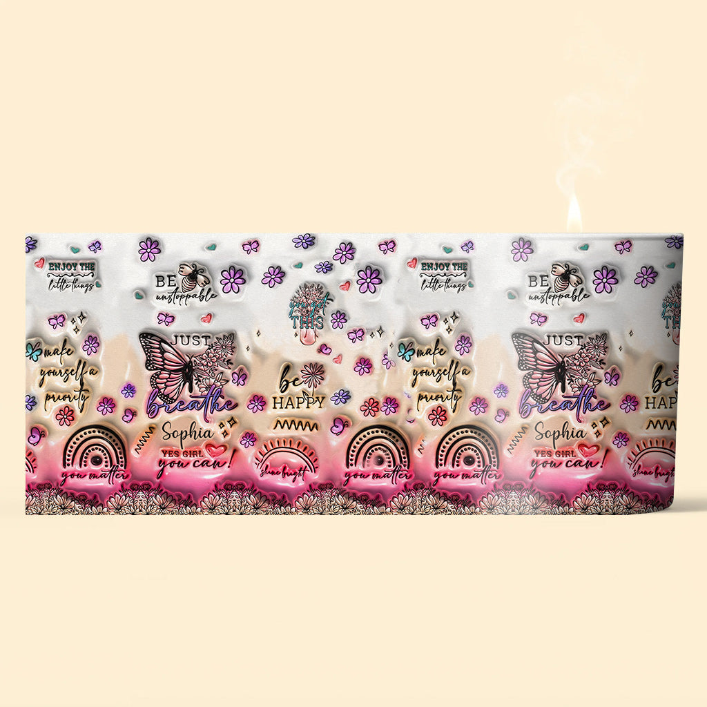 Positive Affirmationen Schmetterling – Personalisierte Schmetterlingskerze mit Holzdeckel