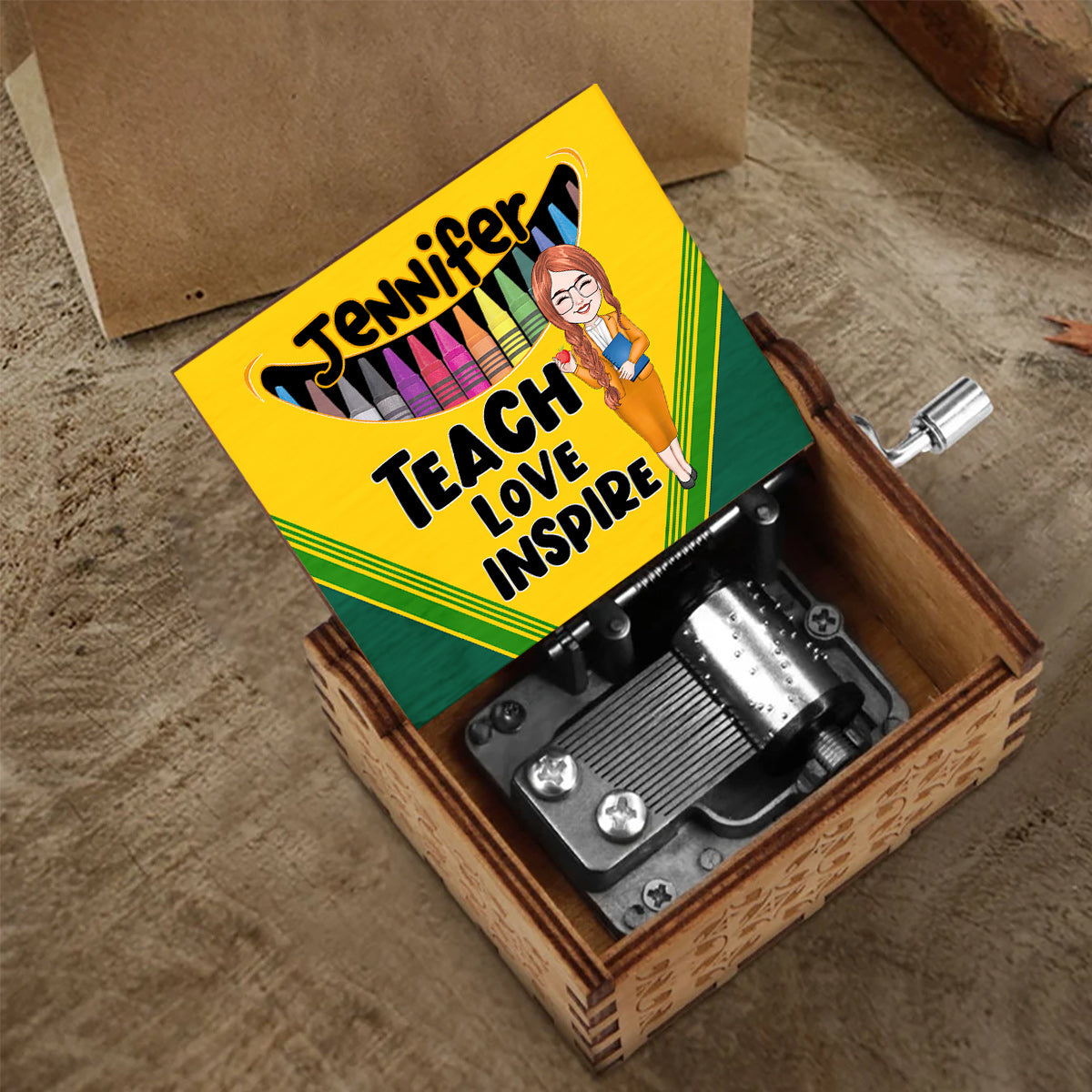 Music box bit small but looks very cute with the sent photo & music sound is very clear & soothing . Very pleased!