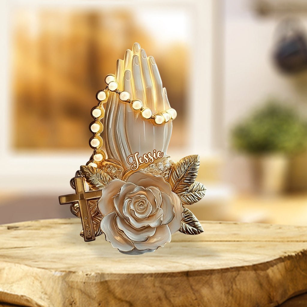 Betende Hände – Personalisierte christliche Acrylplakette in individueller Form