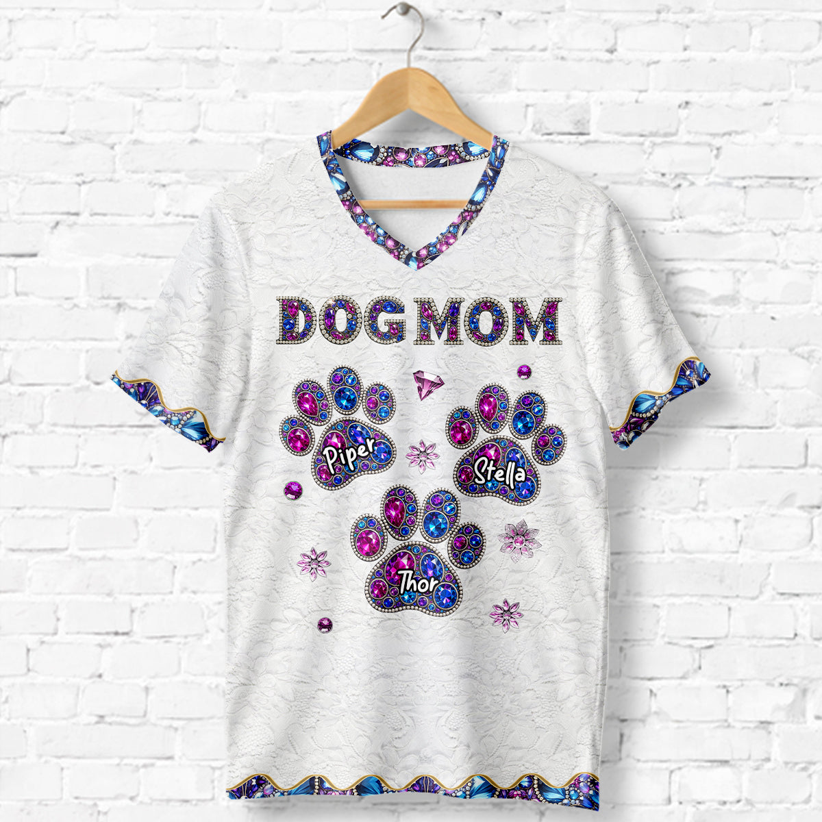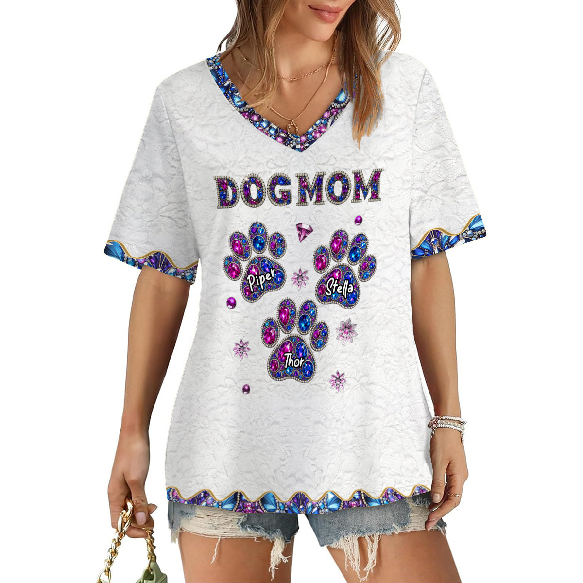 Stolze Hundemama – Personalisiertes T-Shirt mit V-Ausschnitt und Hundemotiv
