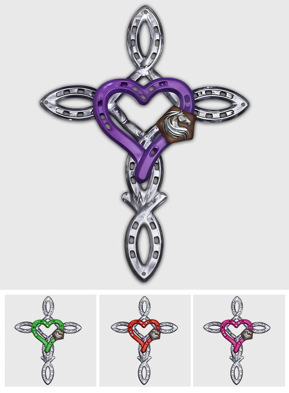 Rustikales Hufeisenkreuz – personalisiertes Schild aus Metall mit Pferdemotiv