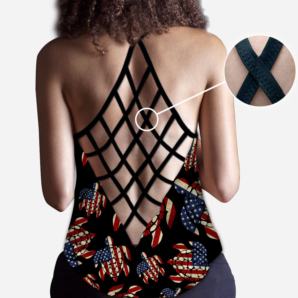 Salty Lil Beach 4th of July Flag - Personalisiertes Tanktop mit Schildkrötenkreuz