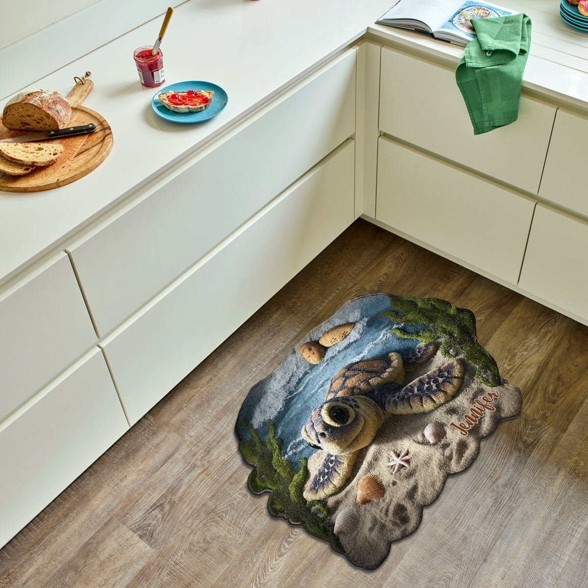 Bis bald! - Personalisierter, rutschfester, getufteter Schildkröten-Teppich