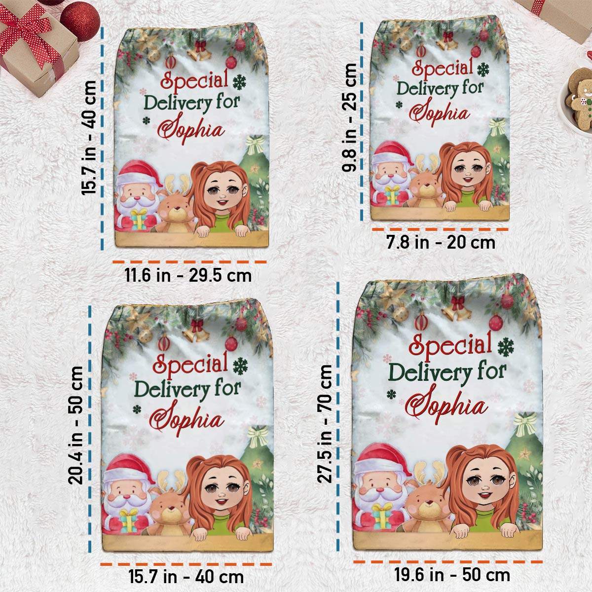 Diese wunderschöne, personalisierbare Wildleder-Tragetasche mit Kordelzug lässt sich mit jedem beliebigen Namen und Design individuell gestalten. Das Design wird direkt in den Stoff gedruckt und sorgt so für ein nahtloses, hochwertiges Finish. Die Tasche wird oben mit zwei Kordelzügen verschlossen, damit Ihre Sachen sicher verstaut sind. Sie eignet sich perfekt als Geschenk für Familie, Freunde, Kinder und besondere Menschen und verleiht Ihrer Weihnachtsbaumdekoration sowie dem Alltag eine persönliche Note. Befüllen Sie diese hübsche Tasche mit Weihnachtsgeschenken und legen Sie sie am Weihnachtstag unter den Baum oder personalisieren Sie sie als besondere Geschenktüte für Heiligabend.
