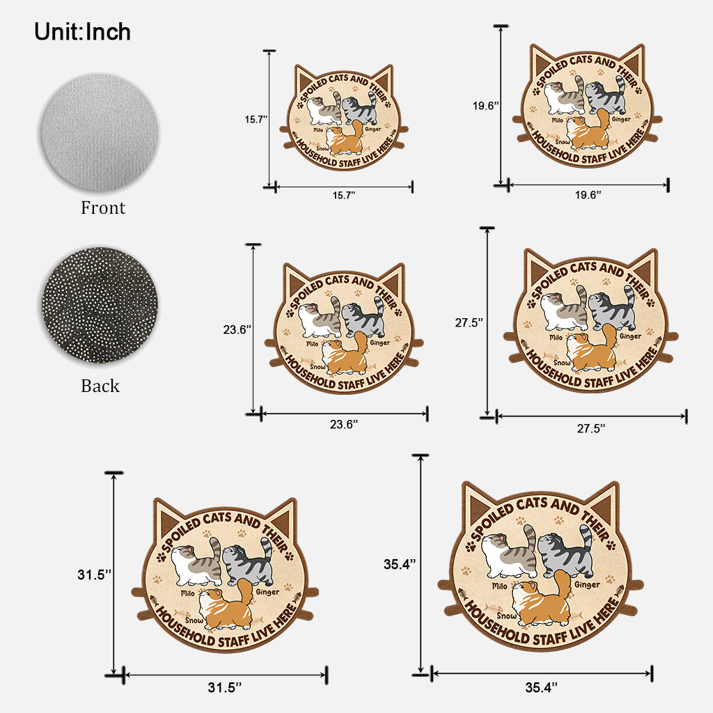 Hier wohnen verwöhnte Katzen und ihr Hauspersonal – personalisierte Fußmatte in Katzenform