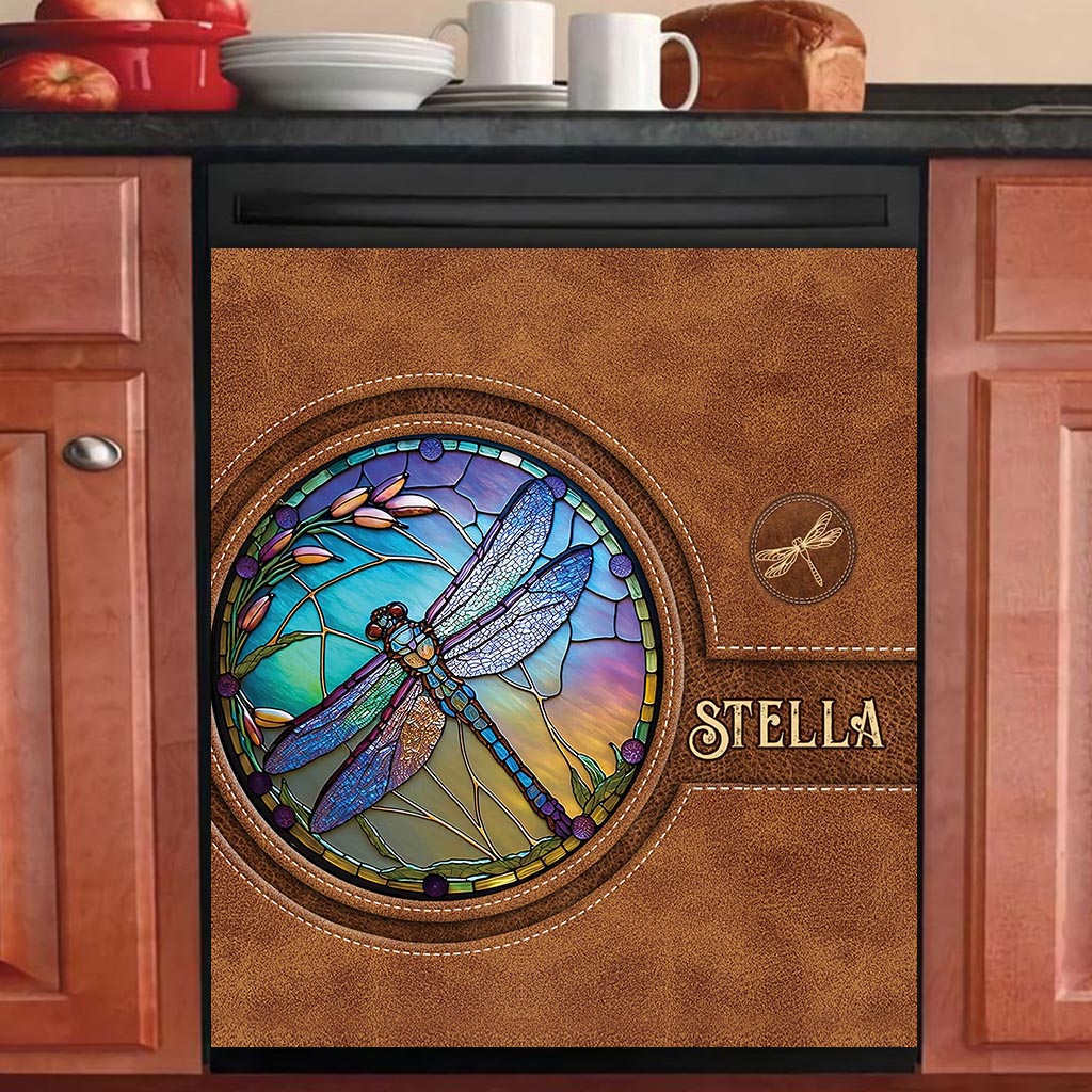 Libelle aus Buntglas – Personalisierte Libellen-Geschirrspülerabdeckung