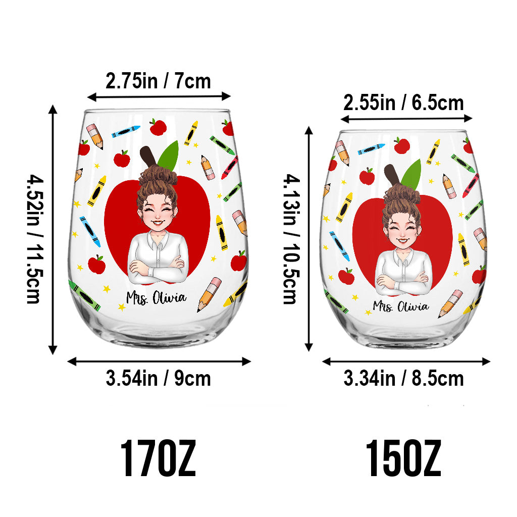 Lehren, Lieben, Inspirieren – Personalisierter Lehrer auf einem Weinglas