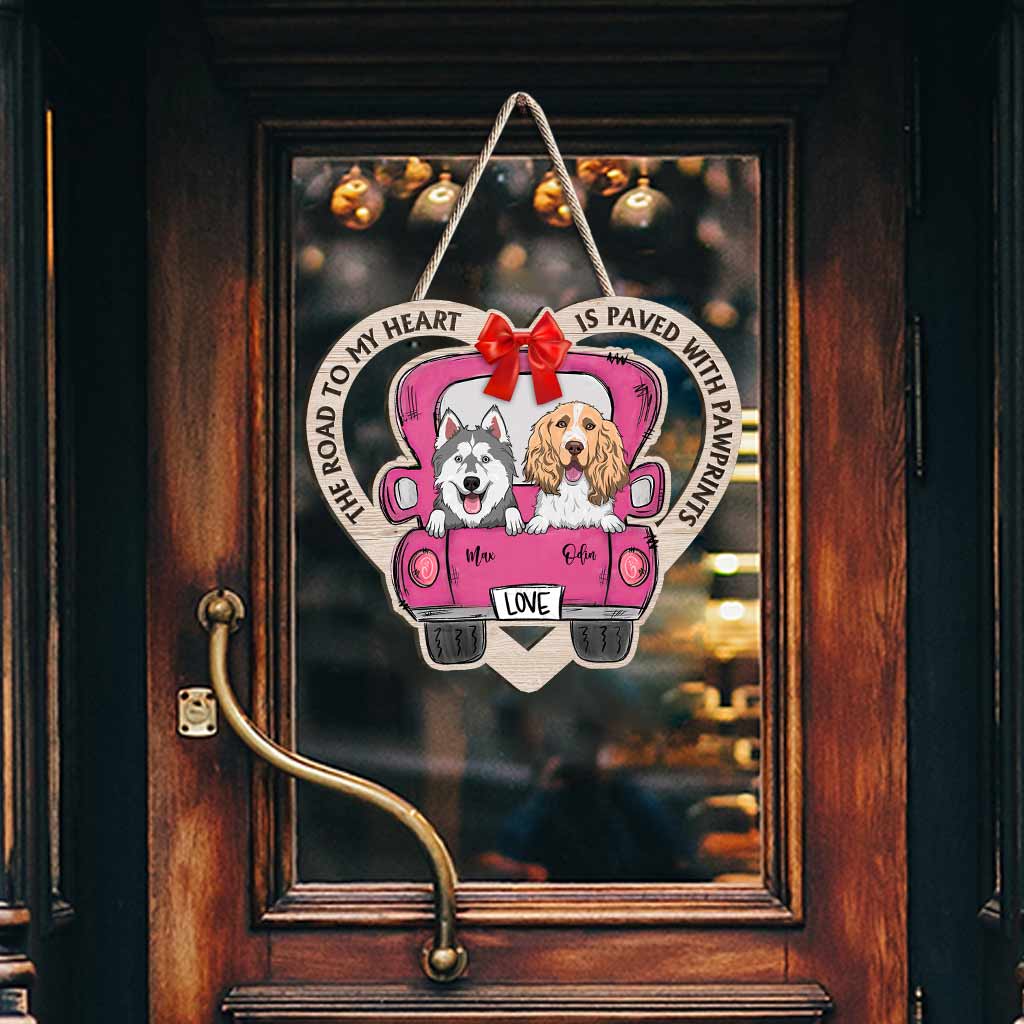 Der Weg zu meinem Herzen ist mit Pfotenabdrücken gepflastert – personalisiertes Hunde-Holzschild