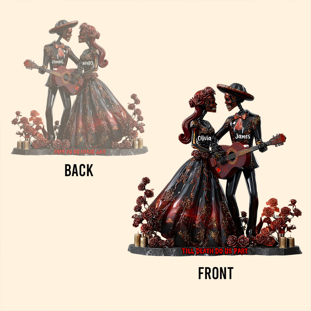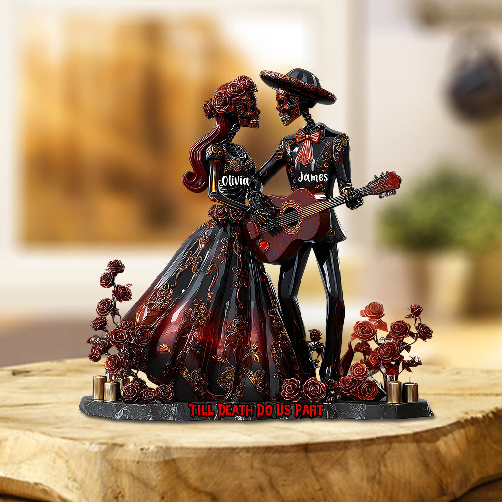 Bis dass der Tod uns scheidet – Personalisierte Totenkopf-Acrylplakette in individueller Form