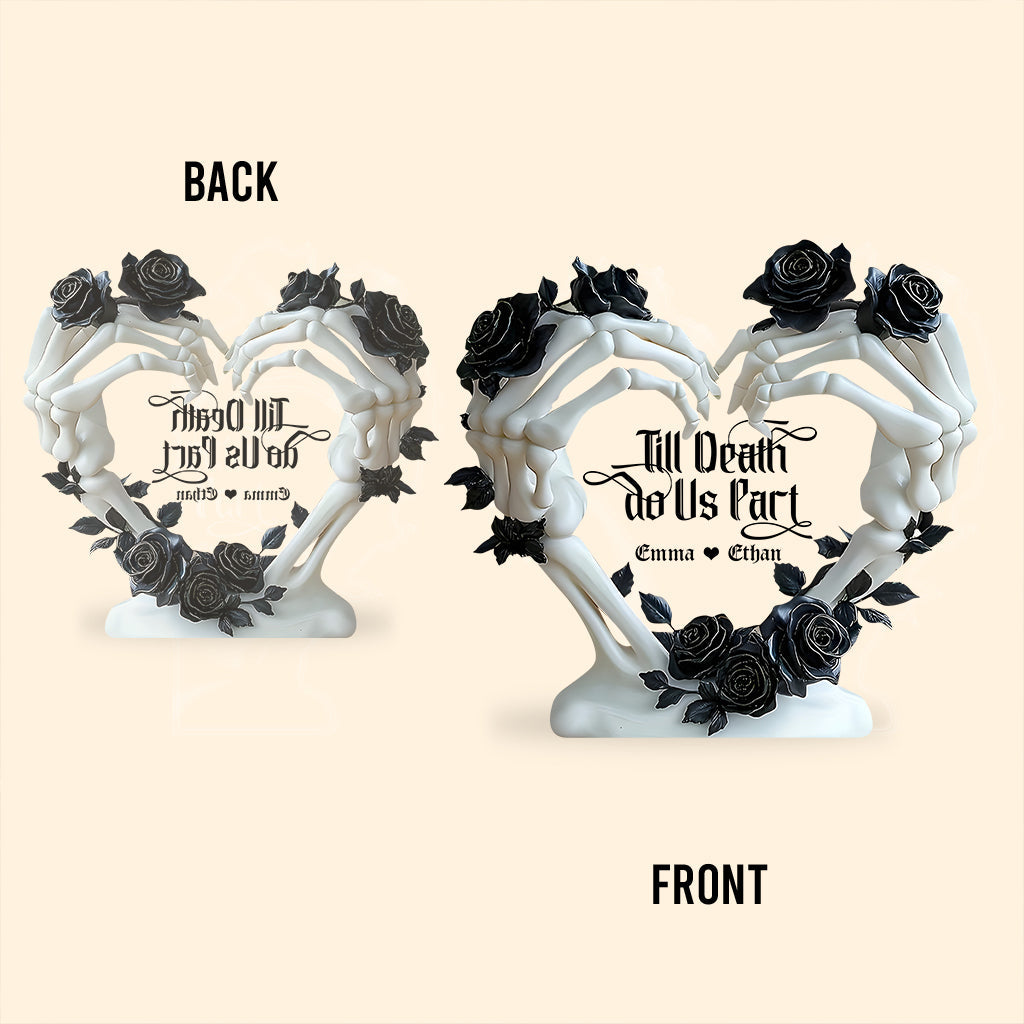 Bis dass der Tod uns scheidet – Personalisierte Totenkopf-Acrylplakette in individueller Form