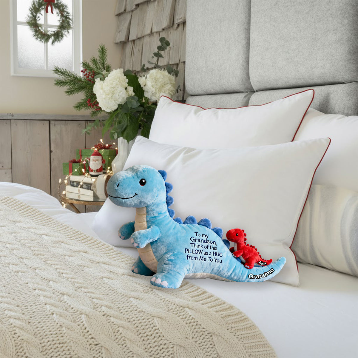 Für meinen Enkel – personalisiertes Kissen in Kinderform aus Kunstfell