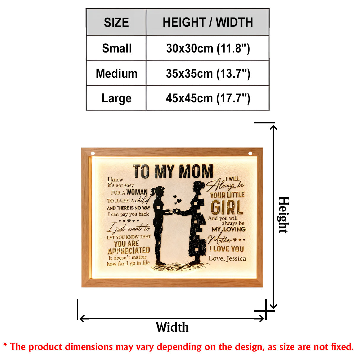 An meine Mama – Personalisiertes Acryl-Schild mit LED-Beleuchtung für Mama