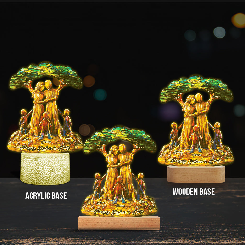 Für uns bist du die Welt – Personalisierte, vaterförmige Gedenktafel mit Leuchtfuß