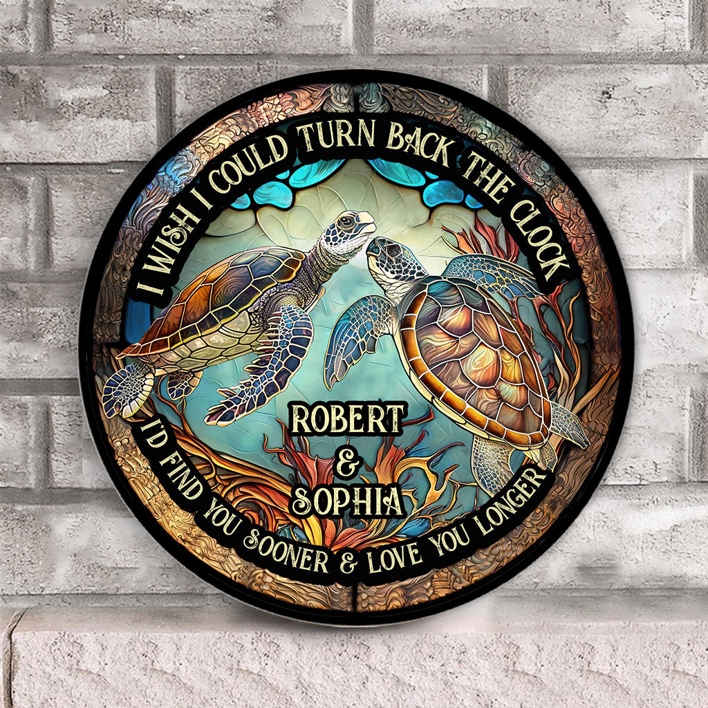 Drehe die Zeit zurück – Personalisiertes rundes Schildkröten-Holzschild