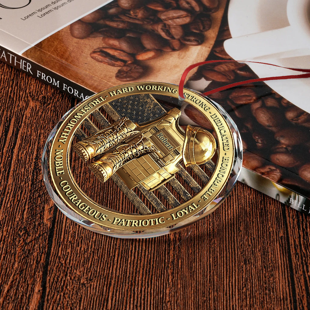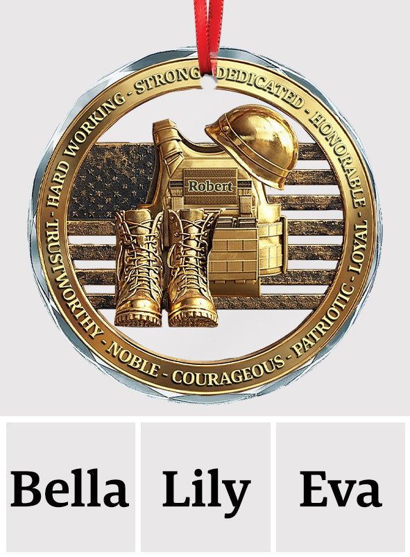 Veteranen-Soldaten-Rucksack, Stiefel, Militär – Personalisierte runde Glasfigur für Veteranen