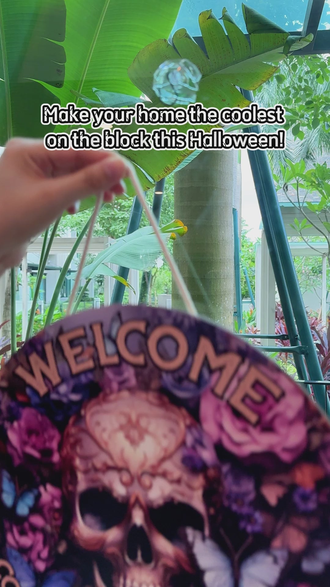 Willkommen! Treten Sie ein und ruhen Sie sich aus – personalisiertes rundes Totenkopf-Holzschild
