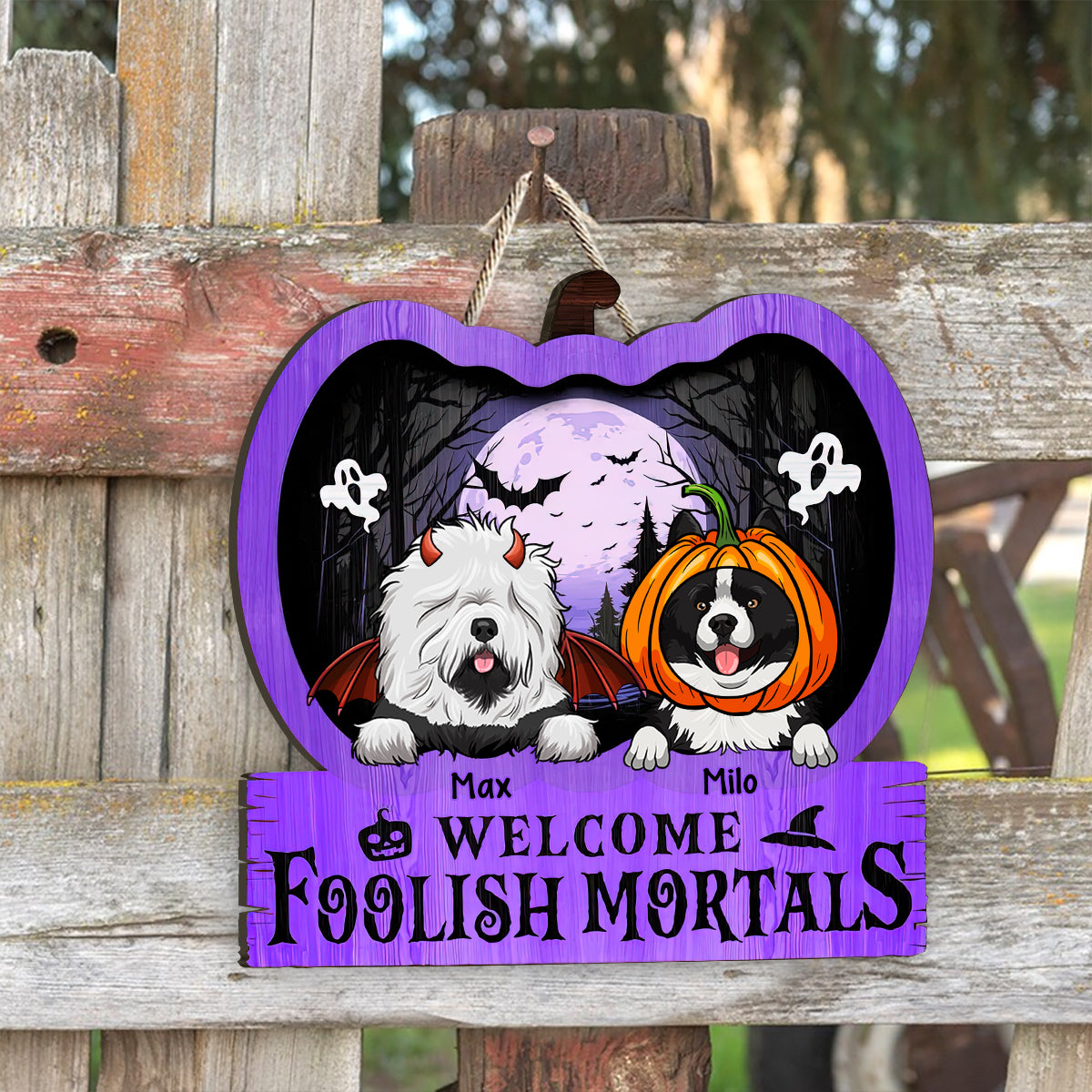 Willkommen, du törichter Sterblicher – personalisiertes Hunde-Holzschild