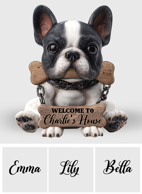 Willkommen in meinem Haus – Personalisiertes Acryl-Gartenschild mit französischer Bulldogge