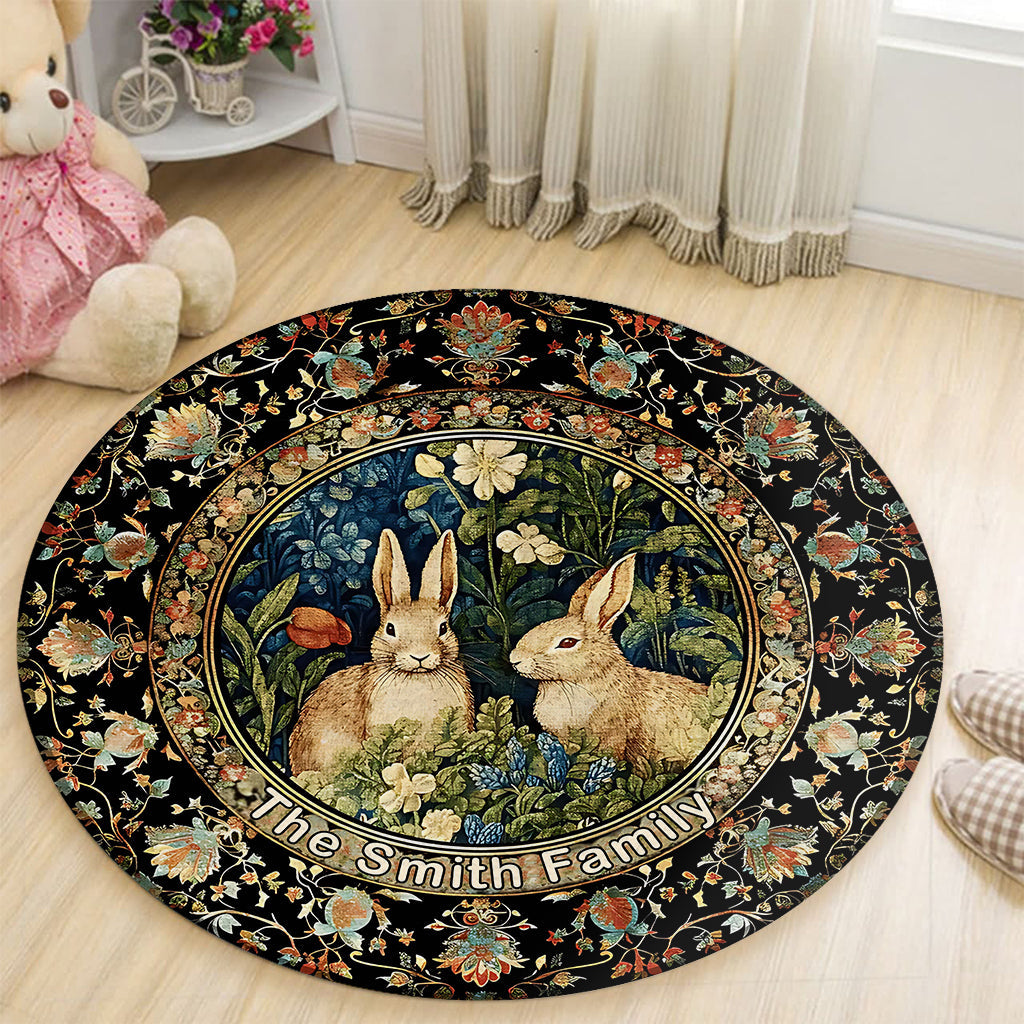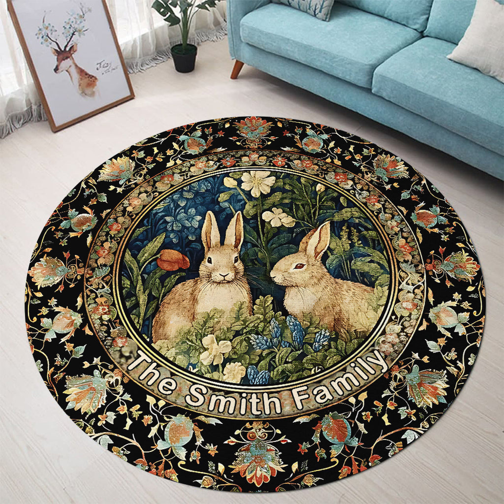 Willkommen in unserem schönen Zuhause – Personalisierter runder Familienteppich