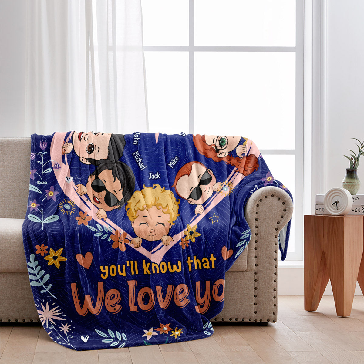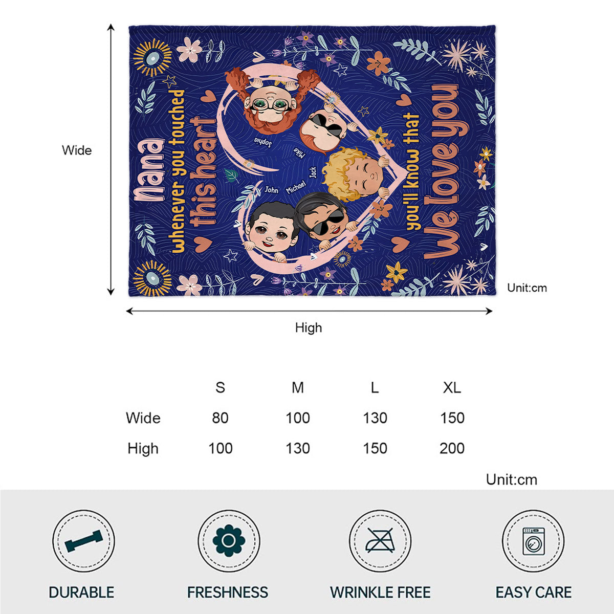 Jedes Mal, wenn du dieses Herz berührst, wirst du wissen, dass wir dich lieben – personalisierte Oma-Decke